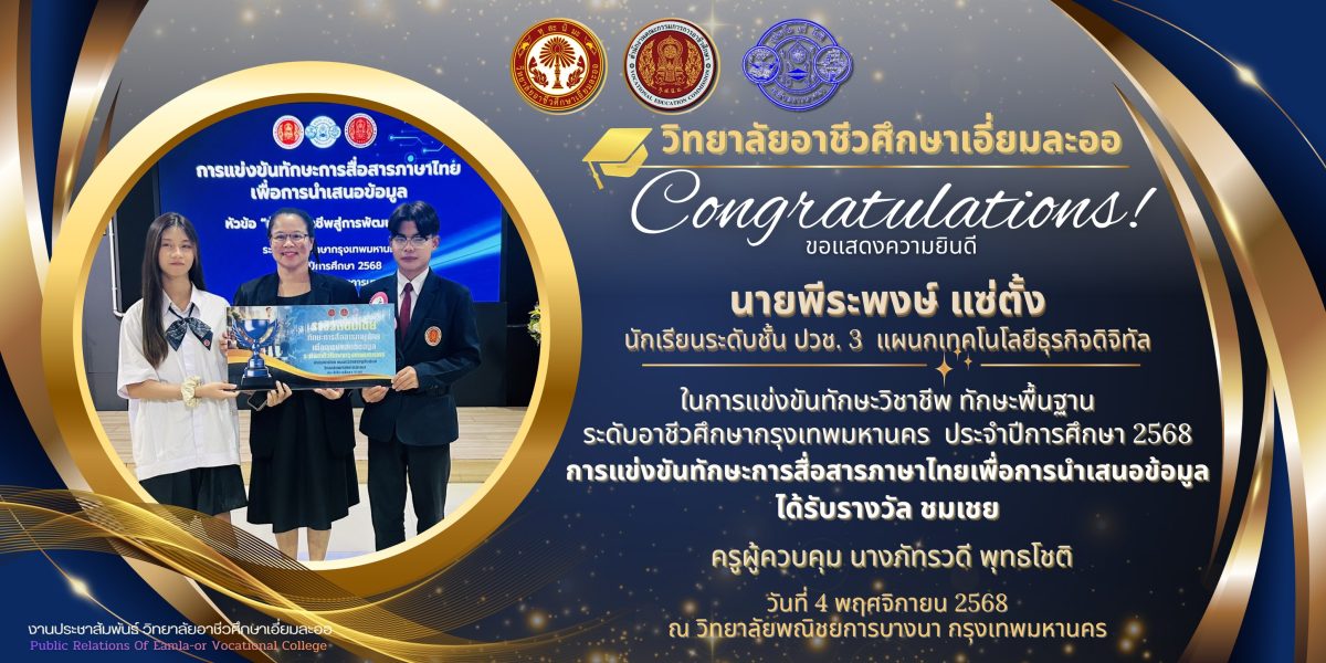ออกแบบและพัฒนาโดย งานศูนย์ข้อมูลและสารสนเทศ วิทยาลัยอาชีวศึกษาเอี่ยมละออ